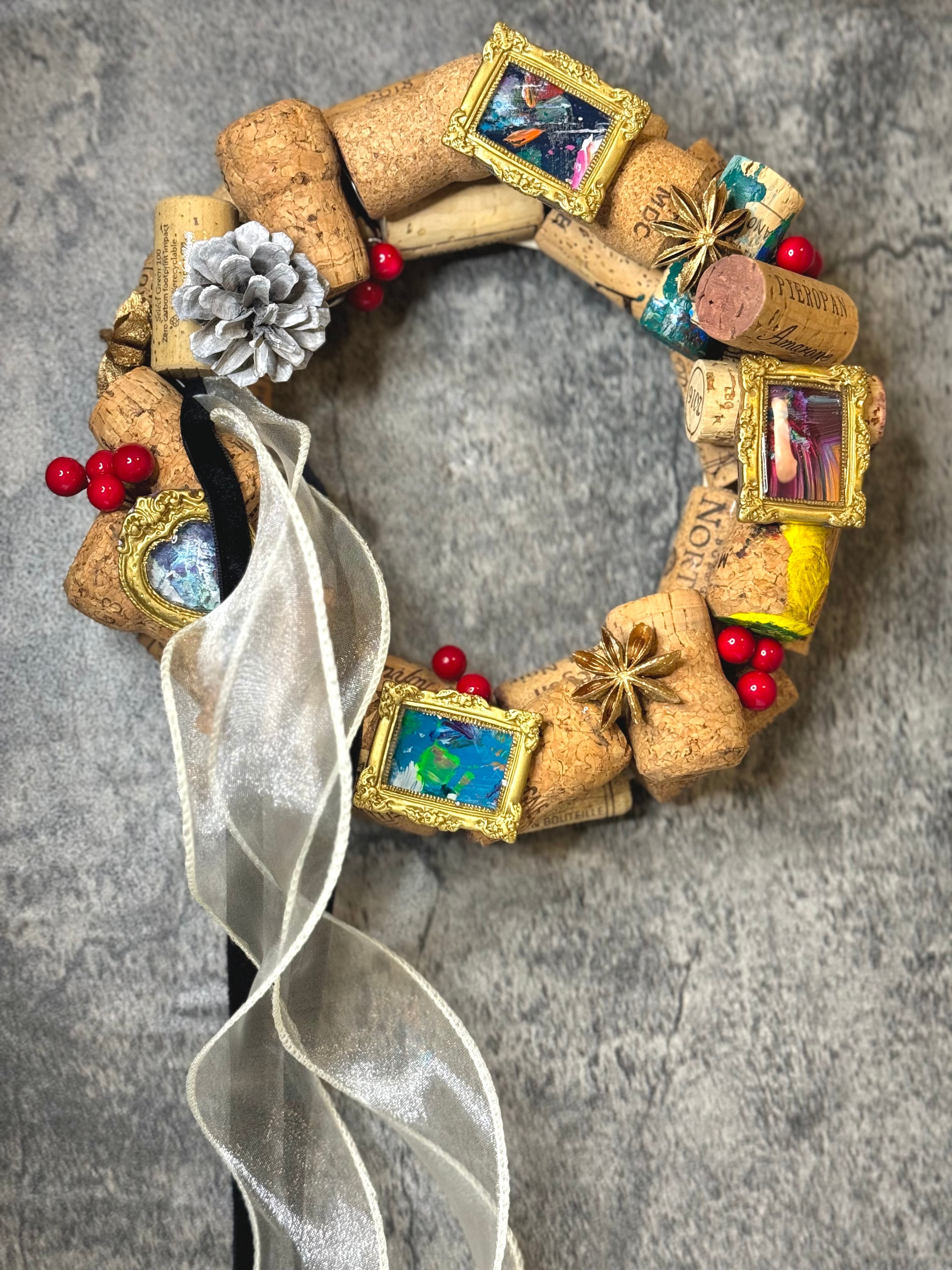 中には、子どもたちとのアートイベントで使われ、絵の具の跡が残るコルクも含まれており、ひとつひとつが小さな記憶とぬくもりを宿しています。