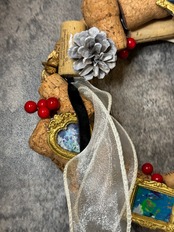 ベロアリボン・チュール・アニス・松ぼっくりなどの装飾が重なり合い、あたたかく上品な冬のムードを演出します。