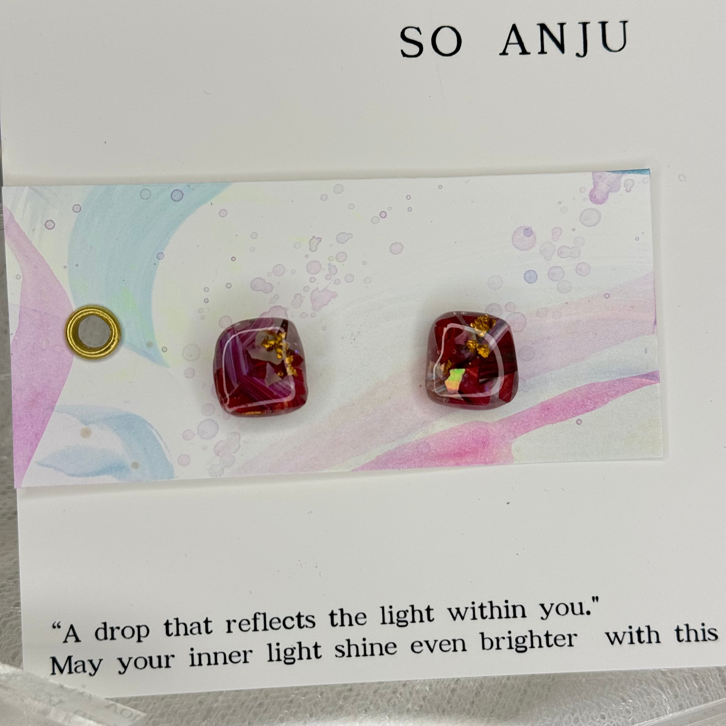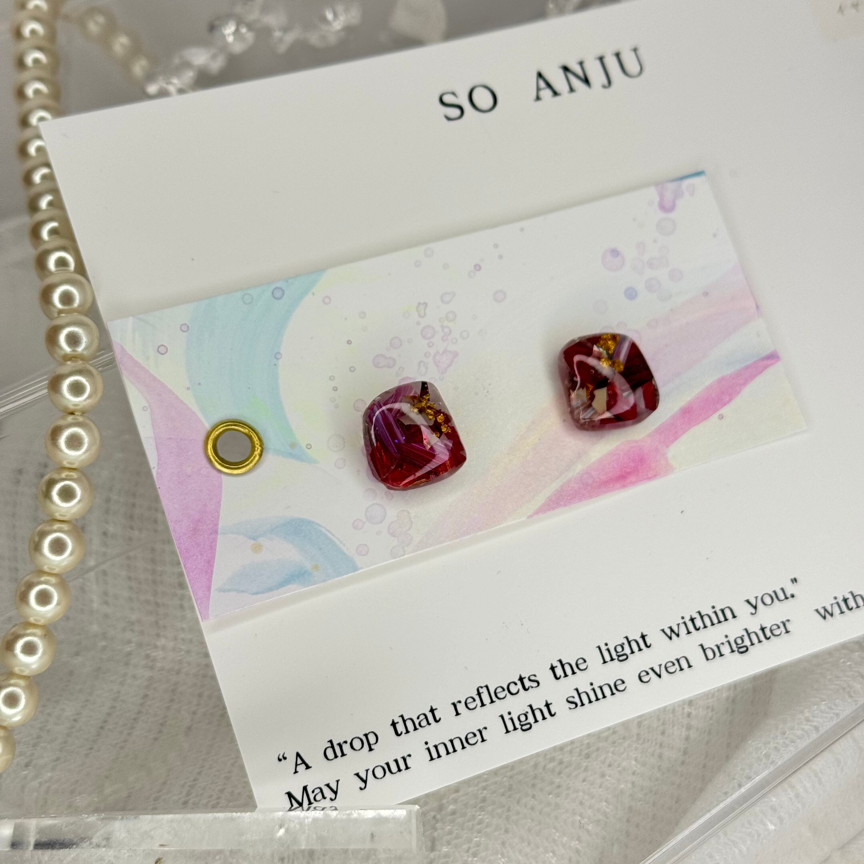 色が混ざり合う瞬間や、描く前の衝動のような時間をそのまま残すように、シェルやパールなどのパーツをを織り交ぜながら一点一点制作しています。
