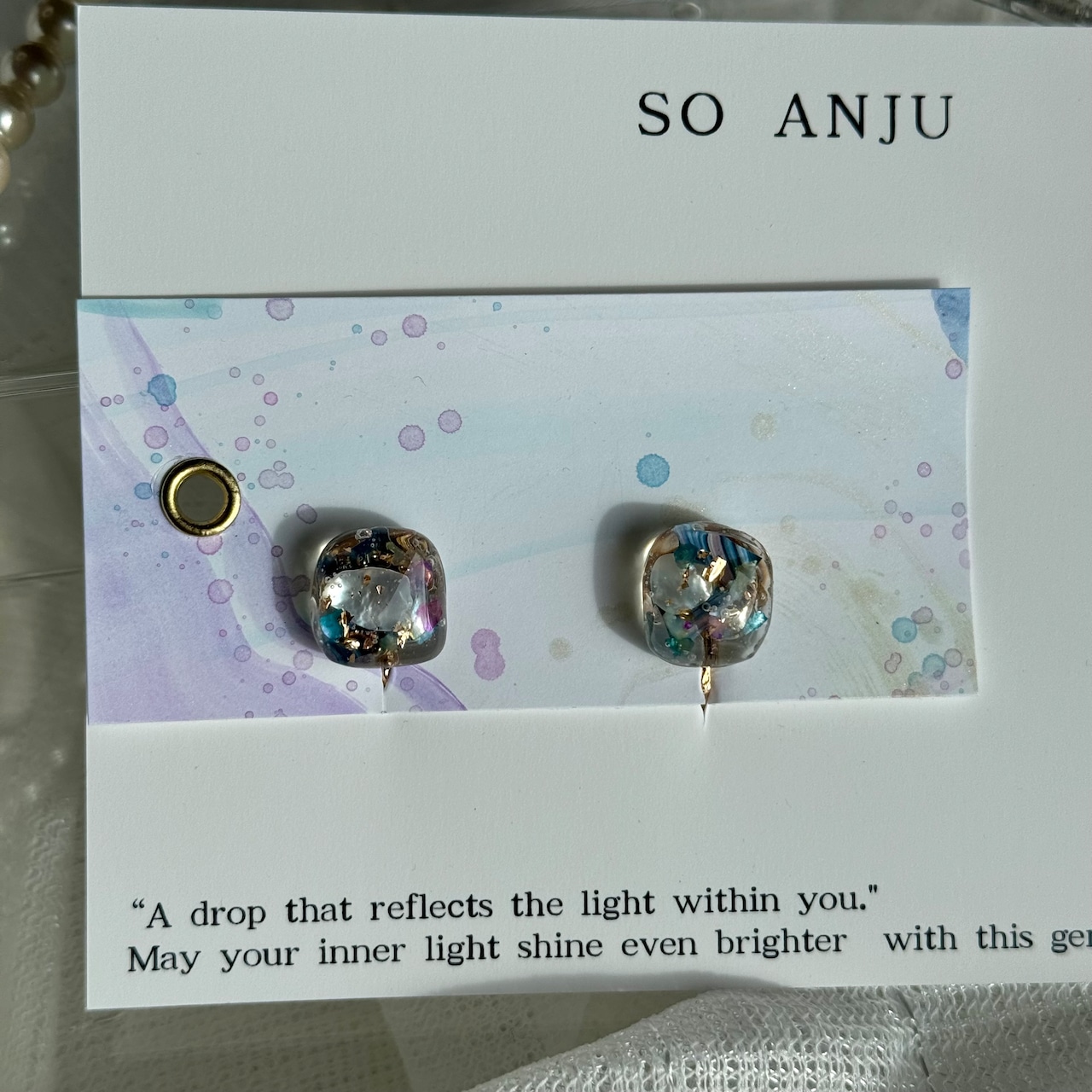 ・レジンは硬度のある素材ですが、強い衝撃や金具部分への無理な力は破損の原因となる場合があります。